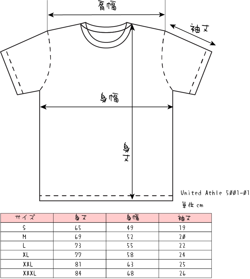 ベース: United Athle 5001-01 ヘビーウェイトTシャツ(5.6onz)