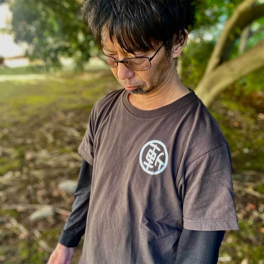 このTシャツは、PCの購入から始まり、絵伝書からのデータ化、ロゴデザイン、配置デザイン、プリント方法の選定と試行錯誤を経て作成されたものであり、大変な想い入れがあります。