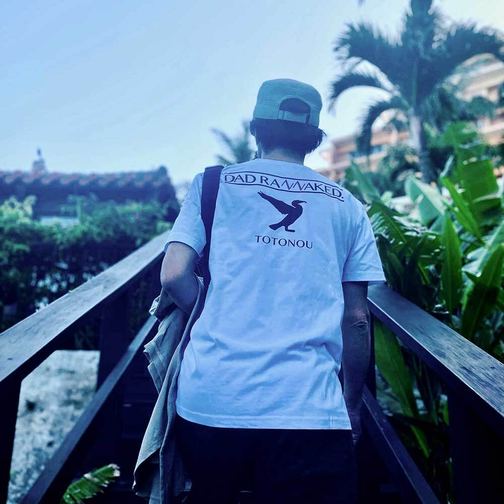 ◯作成の背景:石川県の代表的な方言に「だら」という表現があります。意味は「バカ」とか「アホ」という意味で子供のときは良く言われてました。「バカじゃないの!」は石川県では「だらんねぇけ!」となります。「だらんねぇけ!」を英語っぽく発音すると<DAD RAN NAKED>が近い。「だらんねぇけ!」と言われ続けて大人になりましたが、お陰様ですっかり<DAD RAN NAKED>になってしまいました。<DAD RAN NAKED>Tシャツの第一弾は、サウナに行くときに着ていこうと思い、「鵜」をあしらった<ととの鵜=TOTONOU>としてみました。